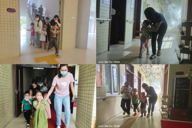 随着急促的警报声响起,各班教师迅速组织幼儿进行疏散,引导幼儿用湿毛巾捂住嘴巴、弯腰,快速选择安全路线撤离教学区域,到达指定疏散地点后,现场教师迅速维持好班级秩序,清点幼儿人数并上报。